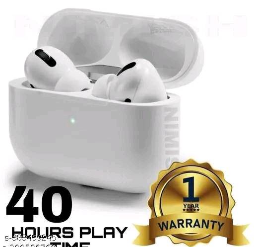 Product Name:* Bluetooth Wireless earbuds* Battery Charge Time: 1 Hour Bluetooth Range: 30m Bluetooth Version: 5.1 Charging Type: IOS Color: White Compatibility: All Smartphones Frequency: 100 Hz Material: ABS Plastic Mic: Yes Model Name: AIRPODS PRO Net Quantity (N): 1 Noise Cancelling: Yes Play Time: Above 20 Hours Type: TWS Warranty Period: 1 Year Warranty Type: Carry In